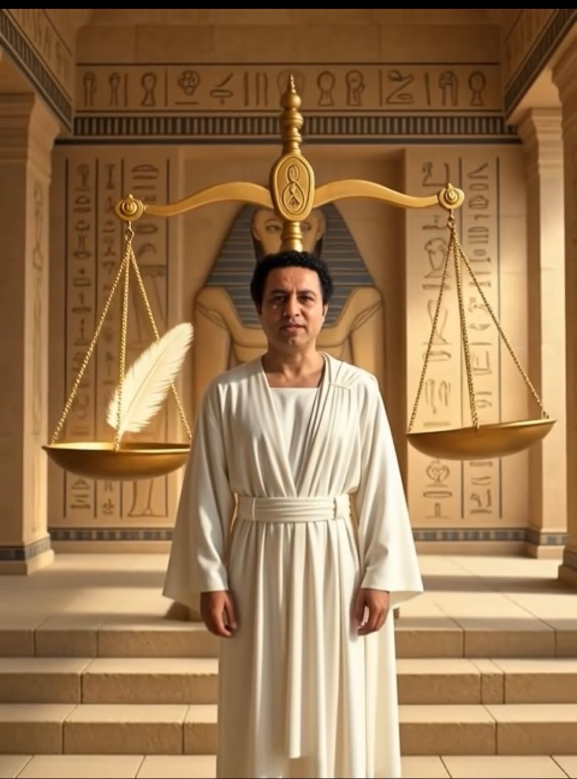 إلى ماعت… أرفع قلبي، لأثبت برّي وصدق أعمالي، فالحقيقة نور الطريق، والعدل هو ما يقود خطاي.