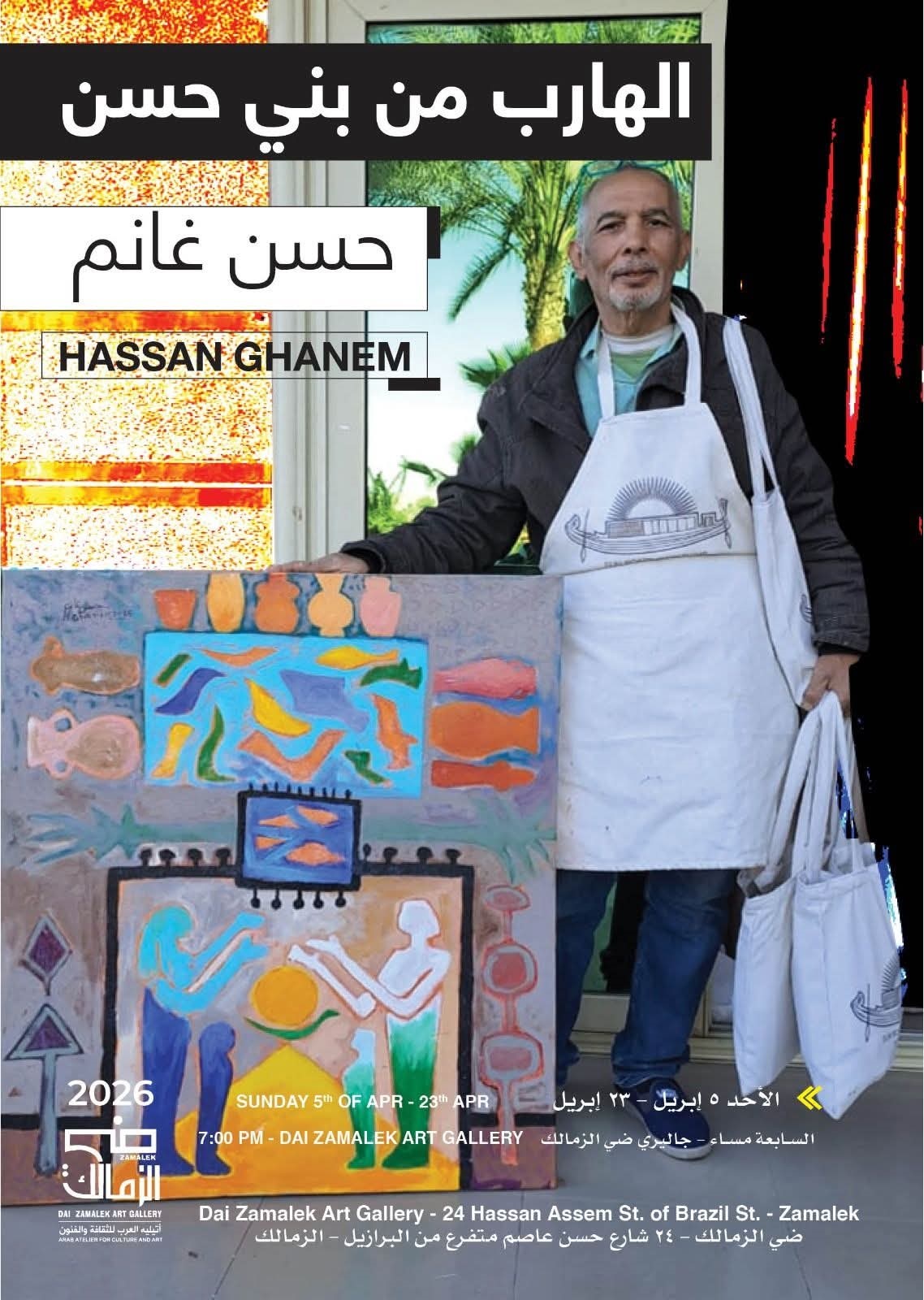 المعرض الثاني للفنان الدكتور حسن غانم بعنوان “الهارب من بني حسن”، ويقدم الفنان حسن غانم ستين عملاً تشكيلياً في الجرافيك والتصوير، وهو فنان جرافيكى متميز، ومصور ونحات أيضا، له مشاركات متعددة داخل مصر وخارجها.