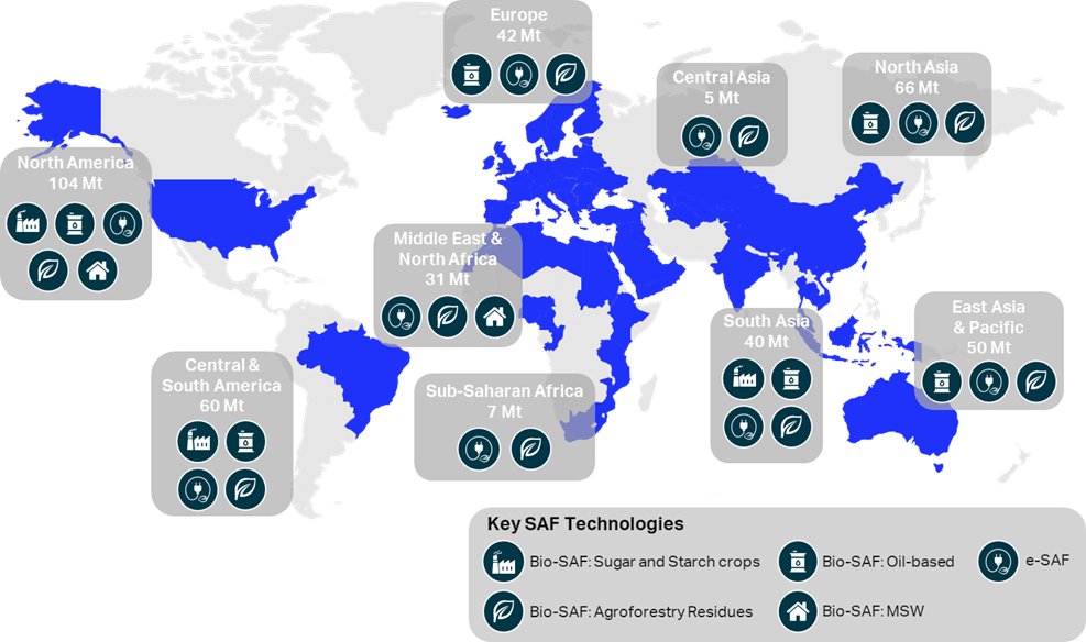وأشارت «إياتا» إلى أن شركات الطيران ستحتاج إلى نحو 500 مليون طن من وقود الطيران المستدام سنوياً لتحقيق هدف الحياد الكربوني، يمكن إنتاج أكثر من 300 مليون طن منها من الكتلة الحيوية بحلول منتصف القرن، على أن يتم استكمال الباقي عبر تقنيات الوقود الاصطناعي «باور تو ليكويد» (PtL). وشددت على أن تعزيز الكفاءة في تحويل المواد الأولية، وتسريع نشر التقنيات الجديدة، وتحسين منظومة نقل المواد الأولية والاستثمار في البنية التحتية اللازمة تعد عوامل أساسية لتحقيق هذا الهدف.