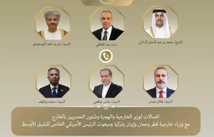 في إطار تنفيذ توجيهات رئيس الجمهورية بخفض التصعيد في منطقة الشرق الأوسط، أجرى د. بدر عبد العاطي وزير الخارجية والهجرة وشئون المصريين بالخارج اتصالات مكثفة بكلٍ من السيد “عباس عراقجي” وزير خارجية إيران، والسيد “ستيف ويتكوف” المبعوث الأمريكي الخاص للشرق الأوسط، والشيخ “محمد بن عبد الرحمن”، رئيس وزراء ووزير خارجية قطر، والسيد “هاكان فيدان”، وزير خارجية تركيا، والسيد “بدر بن حمد البوسعيدي”، وزير خارجية سلطنة عمان، حيث تناولت الاتصالات المستجدات بالمنطقة في ظل تصاعد حدة التوتر بالإقليم.