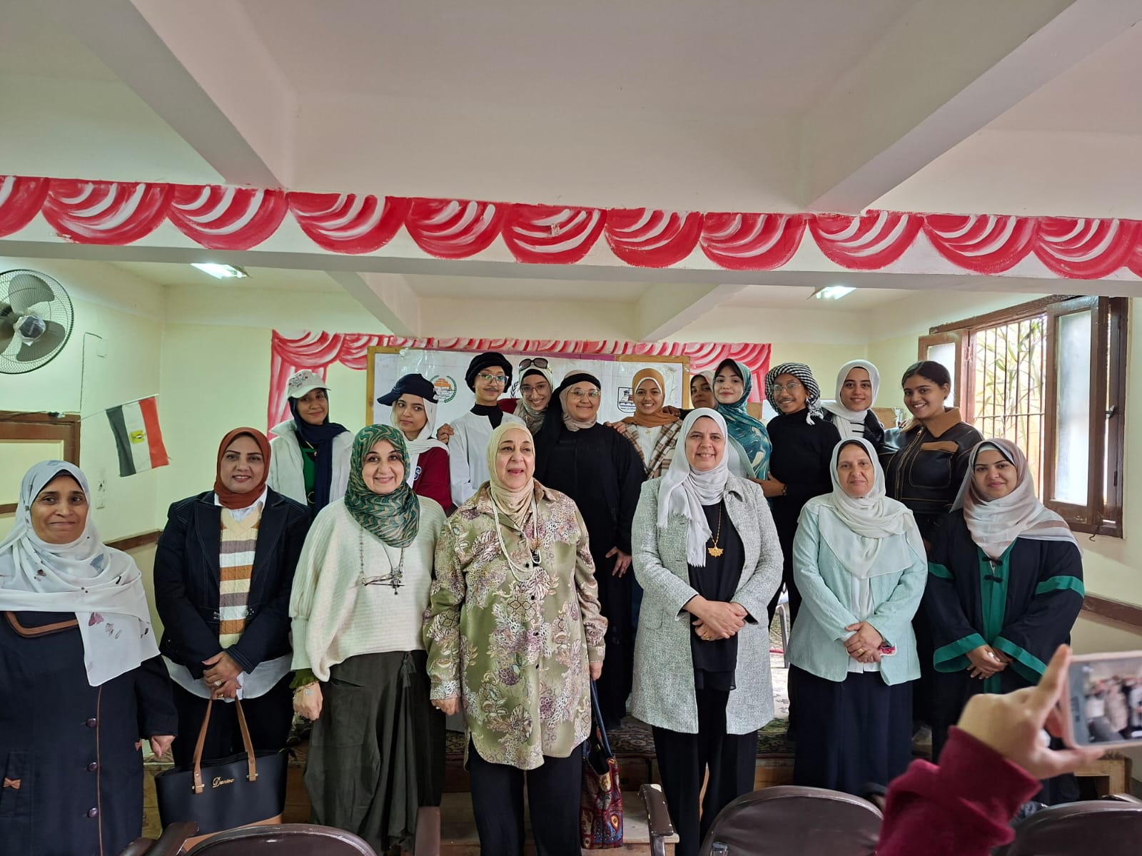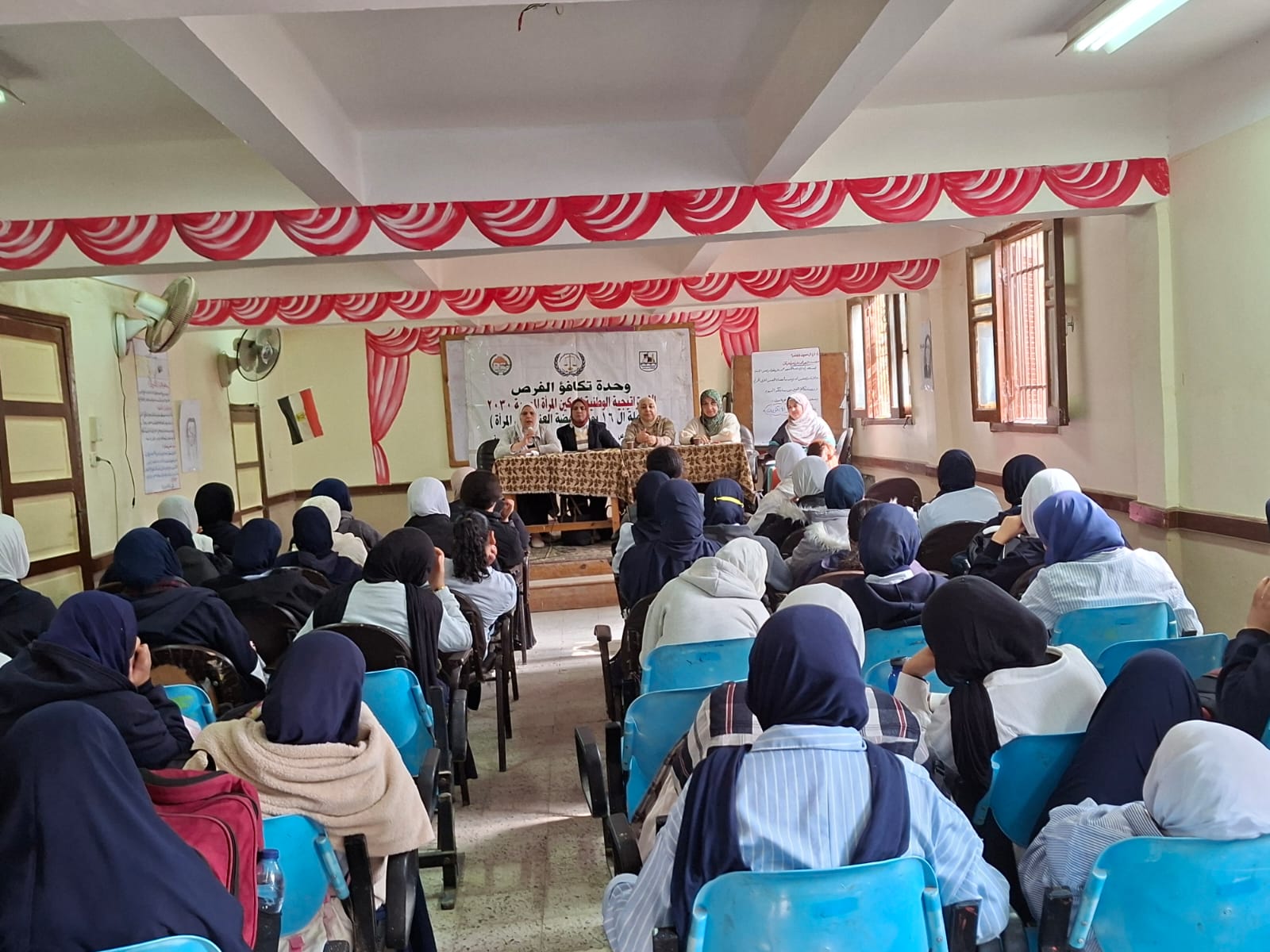 الواعظة آية أحمد عبد التواب بمديرية الأوقاف ، الأستاذة نيفين محمد ممدوح مديرة المدرسة ، الأستاذة مها طلعت منسق تكافؤ الفرص بالإدارة ، الأستاذة سحر صالح و أميرة عبد الرؤوف الأخصائيتان الاجتماعيتان بالمدرسة