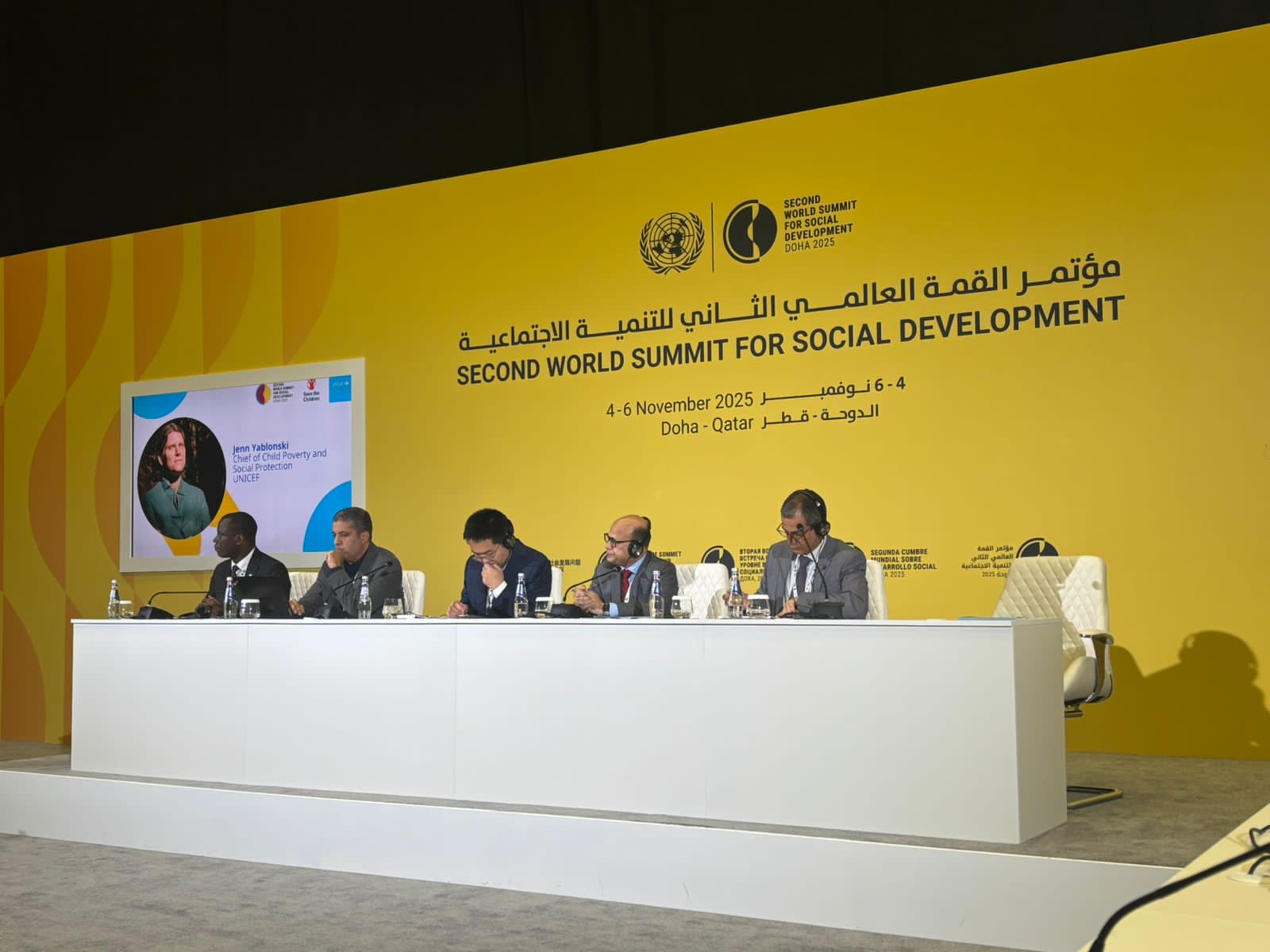 ضمن فعاليات القمة العالمية الثانية للتنمية الاجتماعية، بمشاركة ممثلين من عدة دول ومنظمات دولية، أبرزها اليونيسف و”وهيئة انقاذ الطفوله “.