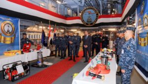 وأعرب الفريق / أشرف عطوة قائد القوات البحرية عن ترحيبه بالتعاون مع وزارة الداخلية لعقد دورات تدريبية فى مجال مكافحة الحريق بهدف تعظيم الإستفادة من الخبرات والإمكانات المتاحة ، مشيراً إلى أهمية التواصل المستمر بين الأكاديمية والإدارة العامة للحماية المدنية للإطلاع على كل ما هو جديد فى هذا المجال .