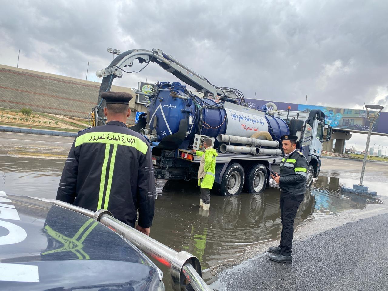 في ضوء ما تشهده البلاد من ظروف مناخية غير مستقرة وتحذيرات بسقوط امطار غزيرة وتنفيذا لتوجهات السيد الوزير قامت الادارة العامة للمرور بالدفع بسيارات الاغاثة المرورية والأوناش والدراجات النارية علي كافة الطرق لتسهيل حركة المرور والتنسيق مع الجهات المعنية لارسال سيارات شفط في اماكن تجمعات المياه تحت اشراف اللواء دكتور علاء فتح الله