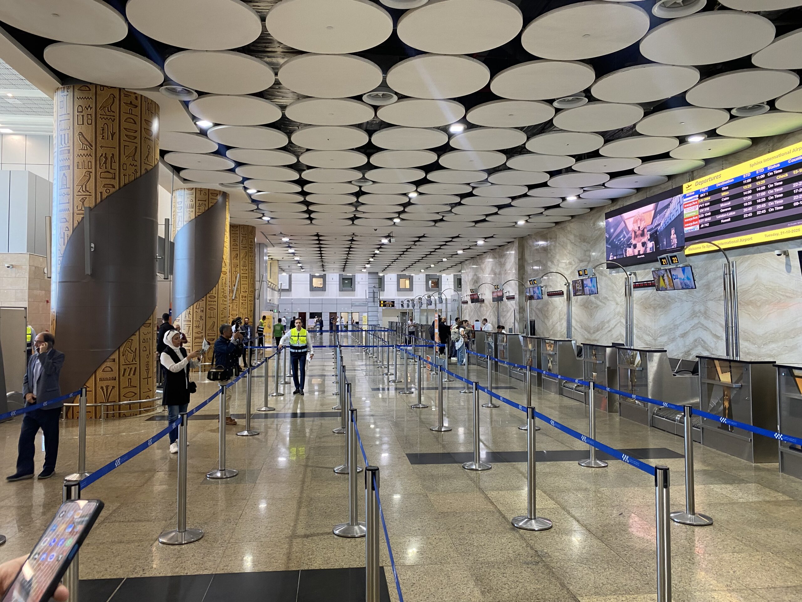وأضاف أنه تم الانتهاء من جميع الاستعدادات داخل صالات السفر والوصول والتجهيزات، إلى جانب وضع اللوحات ذات الطراز الفرعوني الخاصة بالمتحف، وزيادة عدد شاشات عرض الرحلات، وتطوير أماكن انتظار الركاب، ورفع كفاءة الخدمات في مختلف جوانب المطار.