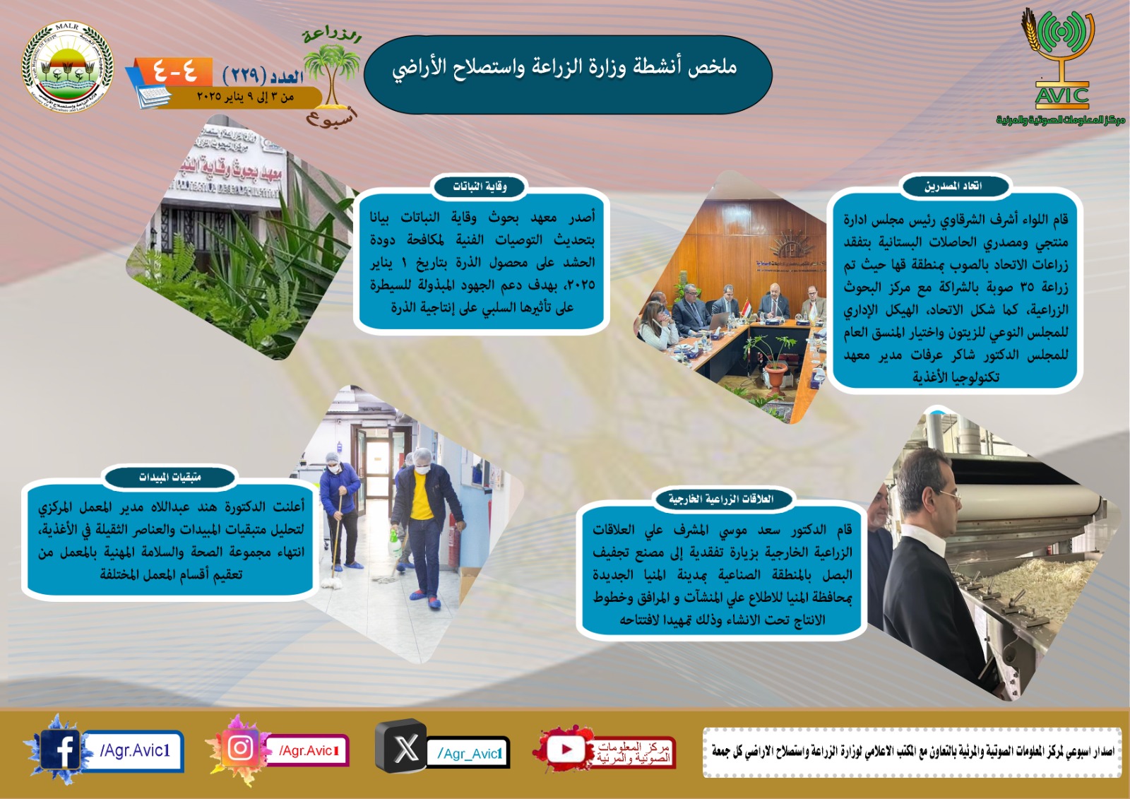 بالانفوجراف والفيديو| “الزراعة في اسبوع” نشرة الحصاد رقم ٢٢٩ لأنشطة الوزارة في الفترة من ٣ وحتى ٩ يناير الجاري