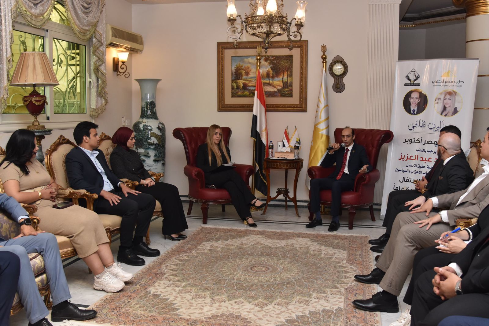 ويشارك في الصالون الثقافي، النائب محمد عبد العزيز عن تنسيقية شباب الأحزاب والسياسيين ووكيل لجنة حقوق الإنسان بمجلس النواب، وعدد من أعضاء وكوادر وقيادات الحزب وأمناء الأمانات النوعية المركزية للحزب.