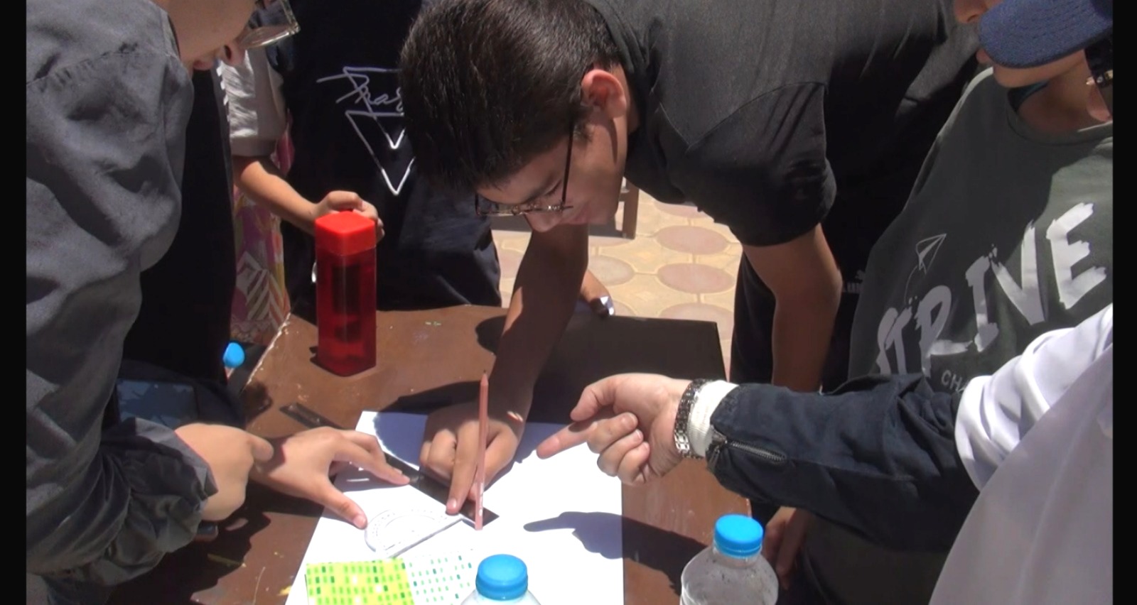 وقام الطلاب بإجراء التجربة العملية في فناء المدرسة، تمام الساعة الثانية عشرة و45 دقيقة ظهرا، بوضع أقلام بشكل عموديٍّ على أسطح مستوية، واستخدموا أدوات القياس الحسابية، لحساب الطول والظل، وليشاركوا في فهم الظاهرة وإدراك طبيعتها، لحساب درجة تعامد الشمس على الأرض، وتفسير ظاهرة الانقلاب الصيفي، وتغيير الفصول.