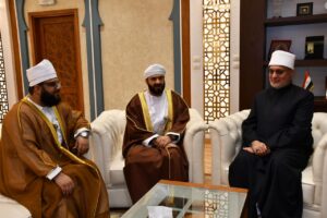 التقى وزير الأوقاف والشؤون الدينية بسلطنة عُمان، الدكتور محمد بن سعيد المعمري، بفضيلة الإمام الأكبر الأستاذ الدكتور أحمد محمد الطيب، شيخ الأزهر الشريف وذلك بمقر الأزهر الشريف بالقاهرة. ورحّب فضيلته بالدكتور المعمري والوفد المرافق له، مؤكدًا عمق الروابط الأخوية التي تجمع البلدين الشقيقين في مختلف المجالات، بالإضافة إلى اهتمامه البالغ بوحدة الصف والعمل المشترك وثبات المواقف، داعيًا إلى تكاتف الجهود وتعزيز التعاون مستقبلًا.