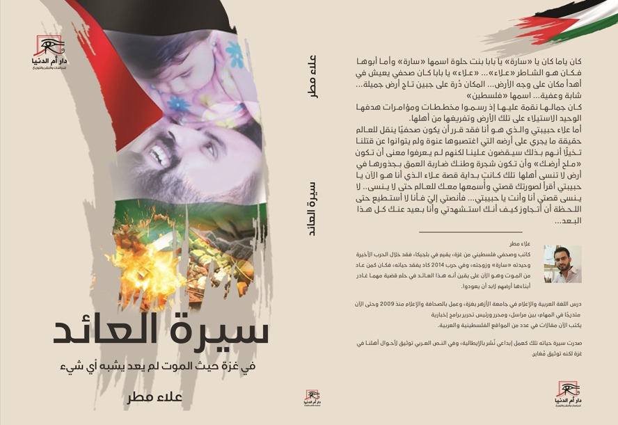 يهدى الكاتب؛ مؤلفه الصادر عن دار أم الدنيا للدراسات والنشر والتوزيع، إلى طفلته «سارة»، ويحمل من خلال سطوره تجربة حياة، أو نجاة، من الموت في «فلسطين» التي صار حالها نقمة عليها بعد رسم مخططات ومؤامرات هدفها الوحيد الاستيلاء على الأرض وتفريغها من أهلها، وقد قرر أن يكون صحفيا ينقل للعالم حقيقة ما يجري على أرضه التي اغتصبوها عنوة، وهو كاتب وصحفي فلسطيني من غزة يقيم في بلجيكا حاليا، وقد فقد خلال الحرب الأخيرة وحيدته «سارة» وزوجته، وفي حرب 2014 كاد يفقد حياته، فكان كمن عاد من الموت وهو الآن على يقين أنه هذا القائد في حلم قضية مهما غادر أبناؤها أرضهم لابد أن يعودوا.
