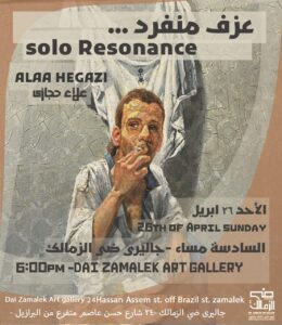 والمعرض الثاني للفنان علاء حجازي يحمل عنوان “عزف منفرد”، ويتضمن خمسين لوحة رسم فنية منفذة بخامات متنوعة مثل الفحم والرصاص، حيث استلهم الفنان الرموز والزخارف من مصر القديمة والمعاصرة.