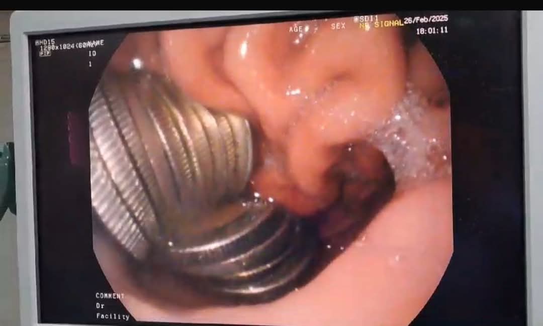 وبعرض الحالة على الدكتور محمد عز، رئيس وحدة الجهاز الهضمي والكبد، تقرر التدخل العاجل باستخدام المنظار لإستخراج العملات المعدنية.