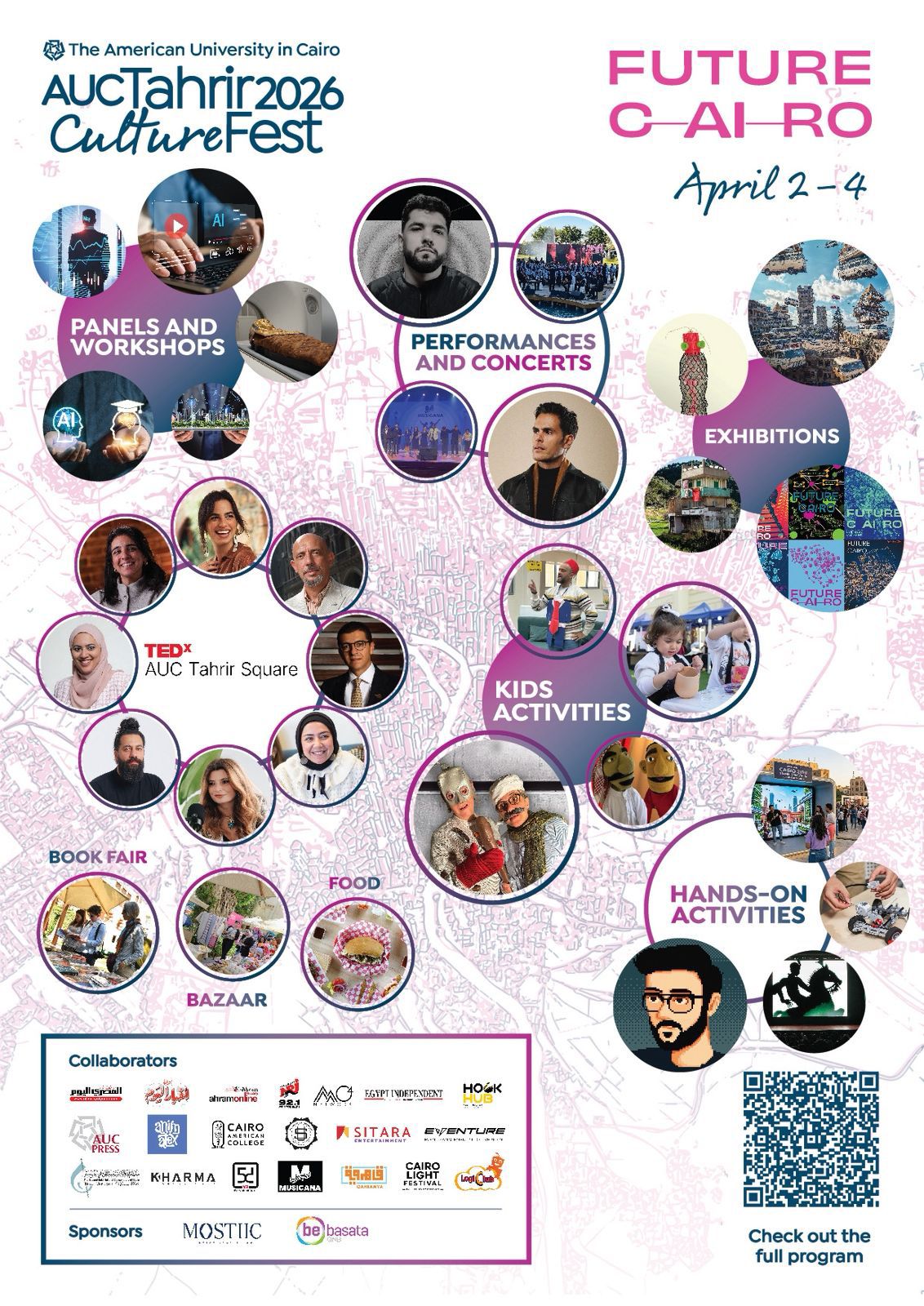 كما يوسع المهرجان نطاقه خارج الحرم الجامعي من خلال جولة مشي بعنوان “العودة إلى القاهرة: من البدايات إلى المستقبل”، تقودها مبادرة “قاهروية” بالتعاون مع الجامعة حيث تتيح للمشاركين استكشاف تحوّلات المدينة عبر الزمن.