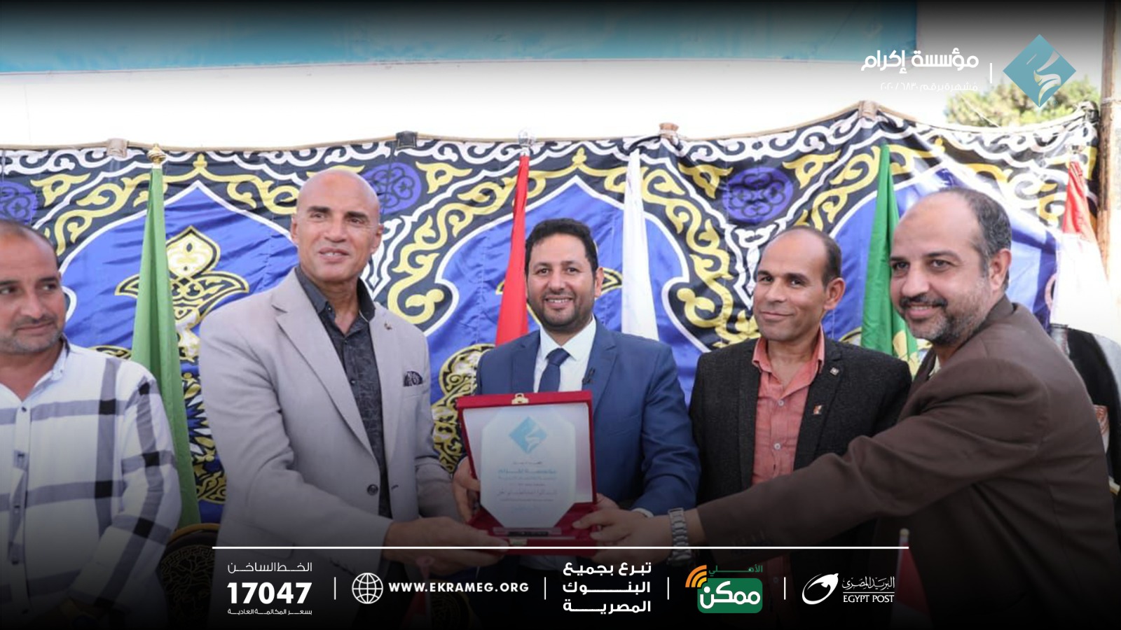 الدكتور كارم الفقي، رئيس مجلس أمناء مؤسسة إكرام، والشيخ عبد الغني سليم، المستشار الديني للمؤسسة، والشيخ محمد عصمت، المستشار الديني للمؤسسة.
