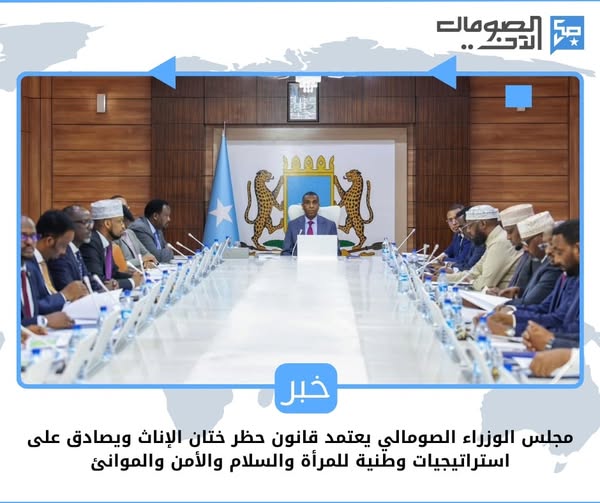 اعتمد مجلس وزراء الحكومة الفيدرالية الصومالية، خلال اجتماعه الأسبوعي يوم أمس الخميس برئاسة رئيس الوزراء “حمزة عبدي بري”، على مشروع قانون يحظر ختان الإناث، في خطوة تاريخية تعكس التزام الدولة بحماية حقوق النساء وتعزيز المساواة بين الجنسين.