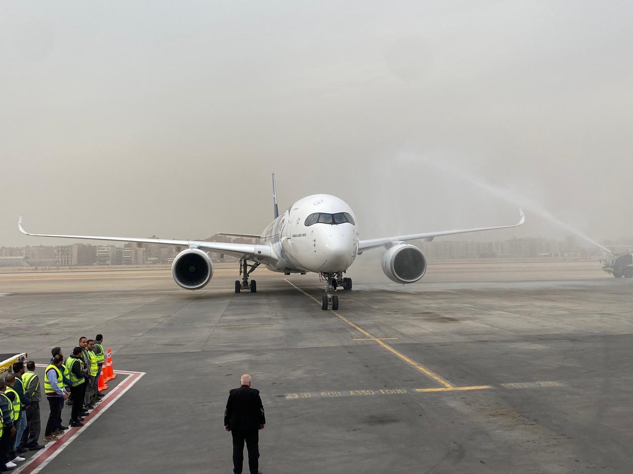 استقبل مطار القاهرة الدولي أول طائرة من طراز إيرباص A350-900 تنضم رسميًا إلى أسطول شركة مصر للطيران، وذلك بحضور الدكتور سامح الحفني وزير الطيران المدني، وعدد من قيادات الوزارة والشركة القابضة لمصر للطيران وشركاتها التابعة، في خطوة استراتيجية تمثل مرحلة جديدة ضمن خطة تحديث الأسطول وتعزيز القدرات التشغيلية للناقل الوطني.