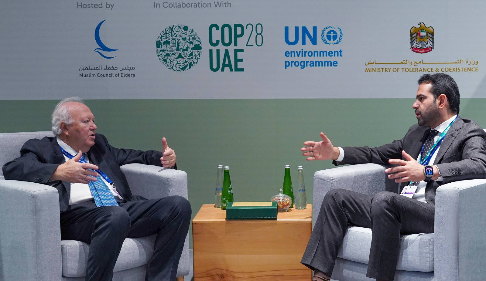 وخلال الزيارة، أكَّد الممثل السَّامي لتحالف الحضارات بالأمم المتَّحدة أهمية دور قادة الأديان ورموزها في مواجهة التَّحديات العالمية، وفي مقدمتها قضية التغير المناخي، مشيدًا بجهود مجلس حكماء المسلمين في حشدِ عددٍ كبيرٍ من المؤسسات الدينية من مختلف أنحاء العالم للحوار معًا من أجل اتخاذ إجراءات فاعلة بشأن قضية المناخ والتوعية بمخاطرها، وإسماع صوت الأديان للقادة المشاركين في COP28 لإيجاد حلولٍ حاسمةٍ لإنقاذ العالم من أزمة المناخ.