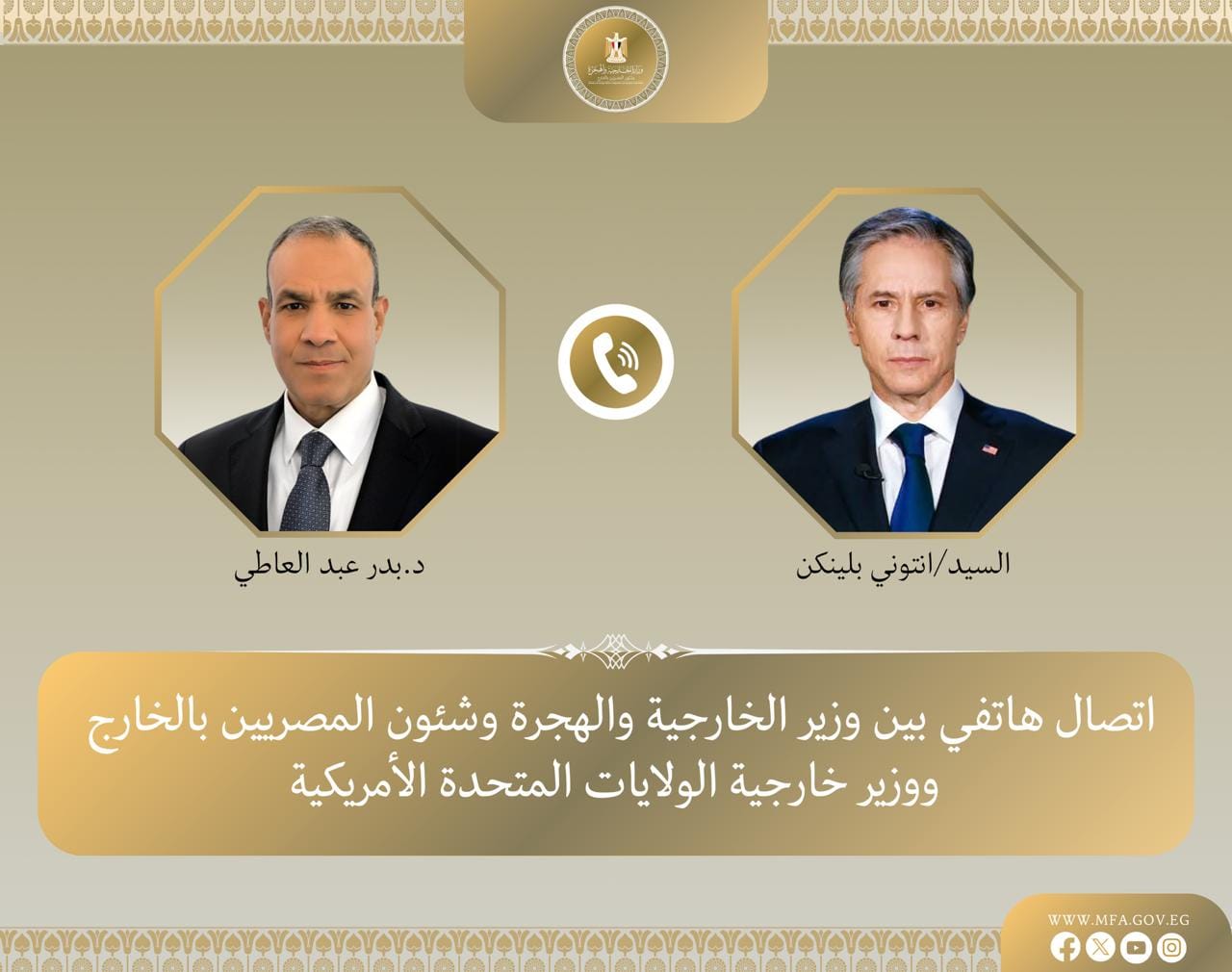 تلقى الدكتور بدر عبد العاطي وزير الخارجية والهجرة اتصالاً هاتفيا من أنتوني بلينكن وزير خارجية الولايات المتحدة الأمريكية مساء امس ٤ يناير ٢٠٢٥، حيث تناول الوزيران خلال الاتصال التطورات فى قطاع غزة والمستجدات فى سوريا.